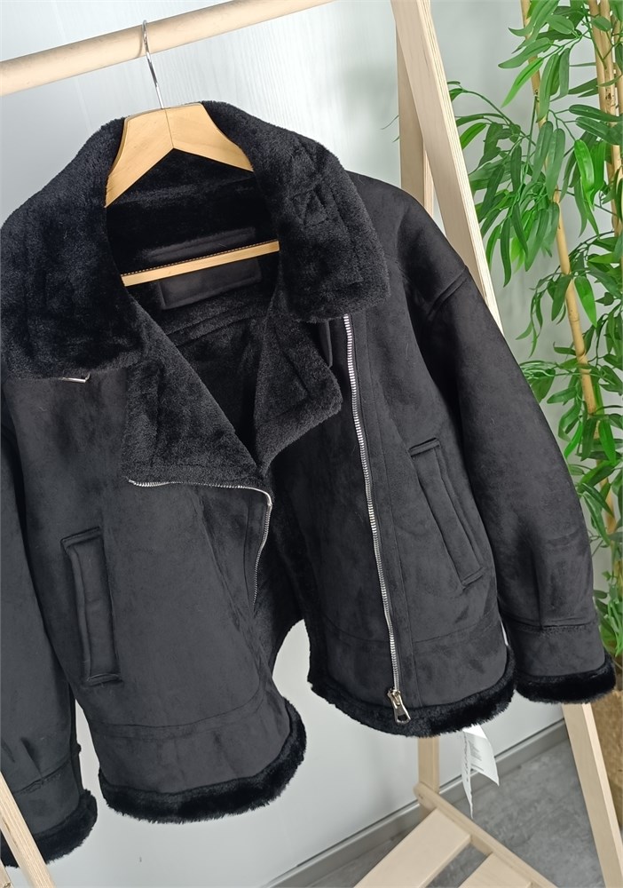 Эко дубленка в черном цвете
